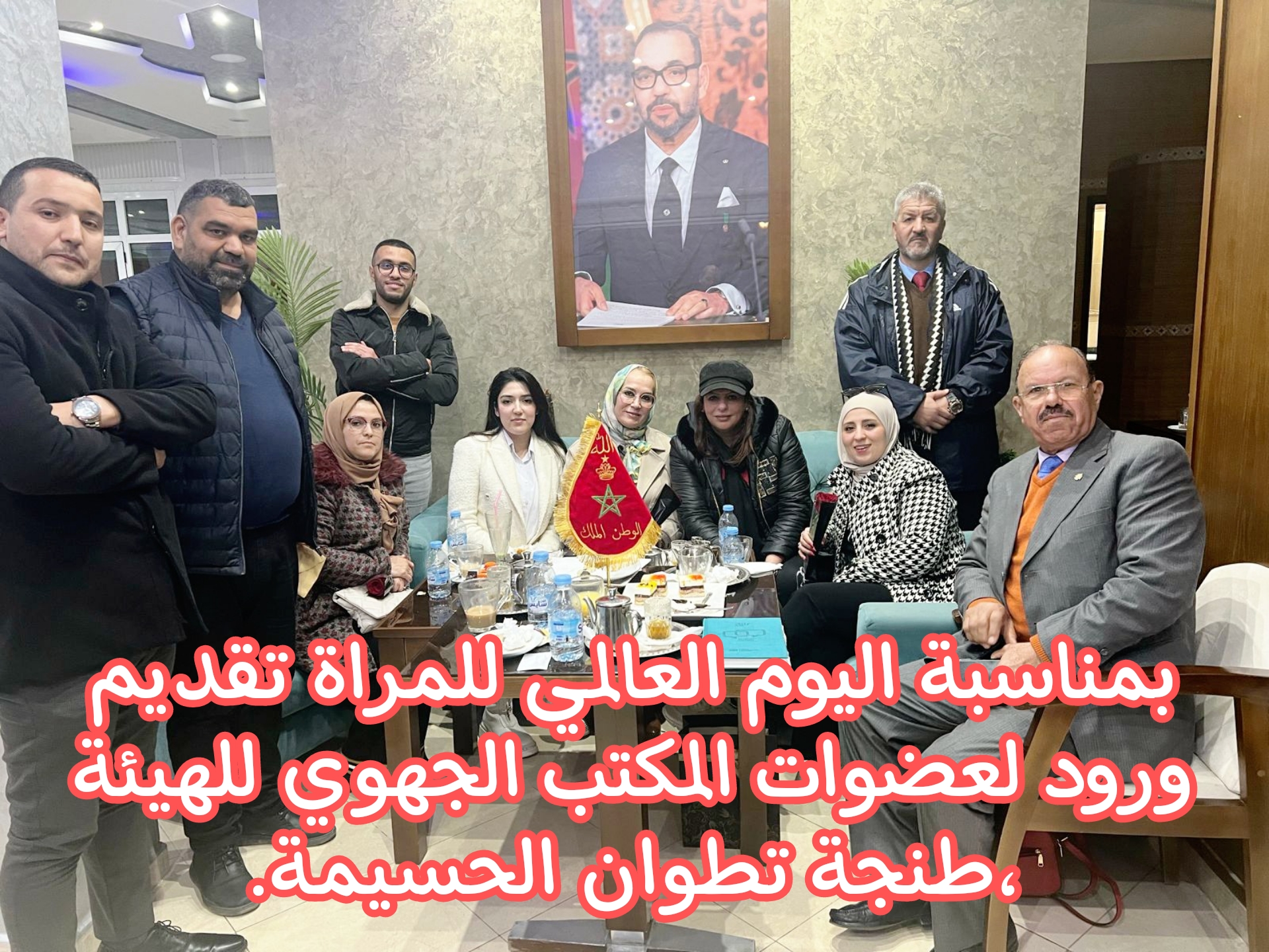 وتزامنا مع كتابة هذا التقرير على الجمع العام السابق الذكر لأسبوع الإحتفال باليوم العالمي للمرأة الذي يتم تخليده يوم 8 مارس من كل سنة. بادر الرئيس الجديد حسن بوكرموص الى إقامة حفلة شاي على شرف عضوات مكتبه الجديد يوم الجمعة 8 مارس 2024،بعدما اخبر جميع الاعضاء للحضور عبر مجموعة الواتساب للمكتب الجهوي للهيئة ،وعليه أقيمت حفلة شاي احتفالا بهؤلاء الاخوات وتم تقديم لهن الورود تعبيرا لهن على بداية عهد جديد بهذه الهيئة مبني على الإحترام والتواصل المستمر، والمقاربة التشاركية هي اساس نجاح كل عمل جمعوي، وبالتالي تسجل هذه المبادرة الرائعة والدالة، للسيد الرئيس كأول خطوة يقدم عليها بعد انتخابه على راس المكتب الجهوي.