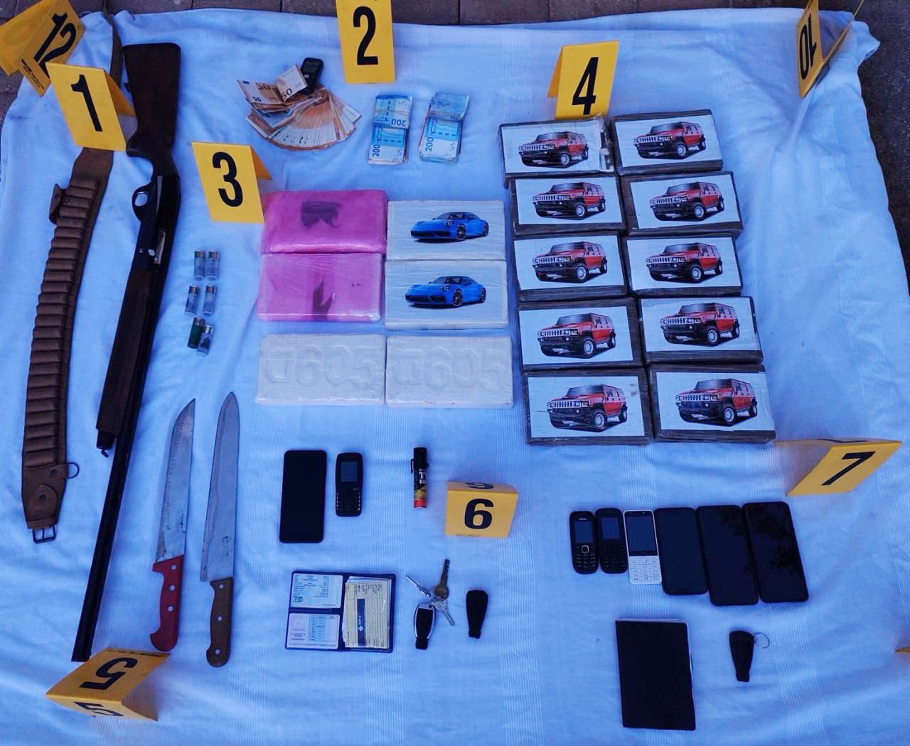 وعلاوة على هذه المواد المخدرة، أسفرت عمليات التفتيش عن حجز بندقية صيد ومجموعة من الخراطيش، علاوة على حجز أسلحة بيضاء وقنينة غاز مسيل للدموع و6 سيارات تحمل لوحات ترقيم وطنية وأجنبية ومبلغ مالي يشتبه في كونه من عائدات هذه الأنشطة الإجرامية.
