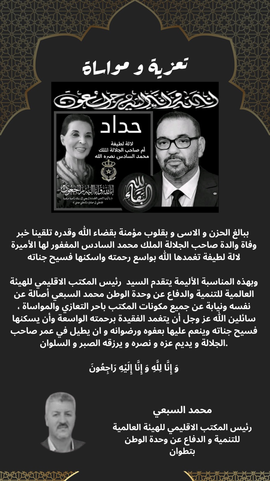 السيد محمد السبعي يعزي في وفاة الأميرة لالة لطيفة أمحزون والدة صاحب الجلالة الملك محمد السادس