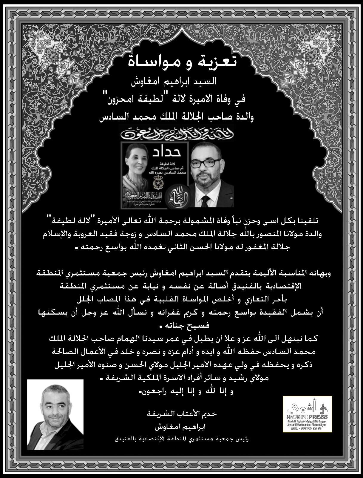 السيد إبراهيم أمغاوش يعزي في وفاة الأميرة لالة لطيفة أمحزون والدة صاحب الجلالة الملك محمد السادس