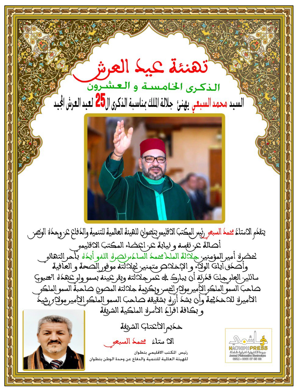 خادم الأعتاب الشريفة السيد “ محمد السبعي ” يهنئ صاحب الجلالة بمناسبة ذكرى عيد العرش المجيد في يوليو 29- 2024 0 264 انشر 0 264 انشر