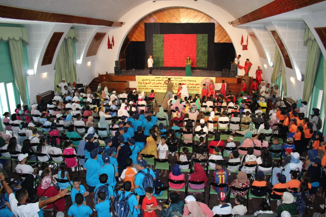 وعجزت القاعة عن استقبال الأطفال، الذين توافدوا عليها من المخيمات الصيفية، وكذا من مدينتي إيفران وآزرو، وعاشوا على مدار ساعتين ونصف أجواء احتفالية، تخللتها لوحات وطنية، قدمها اطفال من ذوي الاحتياجات الخاصة و اطفال مخيم المكتب الوطني للمطارات بمناسبة عيد العرش المجيد.