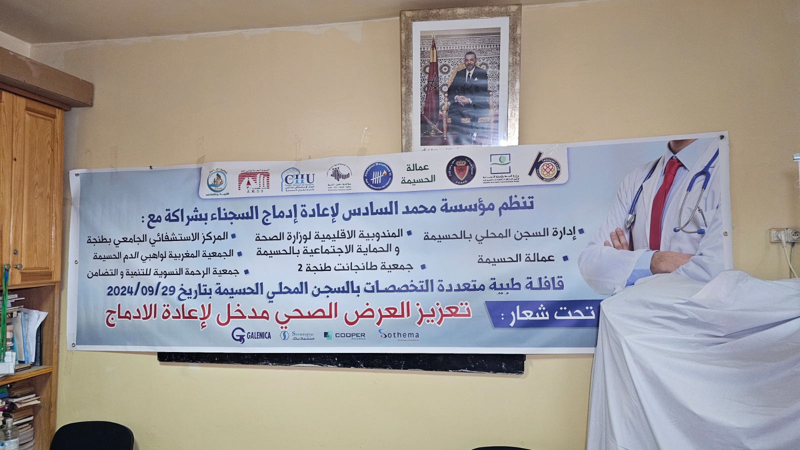 نظمت مؤسسة محمد السادس لإعادة إدماج السجناء بجهة طنجة تطوان الحسيمة يومه 2024/09/29 قافلة طبية متعددة التخصصات بالسجن المحلي بالحسيمة بشراكة مع إدارة هذه المؤسسة السجنية،المندوبية الإقليمية لوزارة الصحة والحماية الاجتماعية بالحسيمة ، المركز الاستشفائي الجامعي بطنجة ،عمالة الحسيمة ،مجلس جهة طنجة تطوان الحسيمة ، جمعية طانجانت طنجة2، الجمعية المغربية لواهبي الدم بالحسيمة و جمعية الرحمة النسوية التنمية والتضامن بطنجة حيث استفاد جميع نزيلات ونزلاء المؤسسة المذكورة الذي تجاوز عددهم فوق 200 من فحوصات واستشارات طبية وأدوية مجانية مصاحبة في سبع تخصصات طبيةنوردها كالاتي: