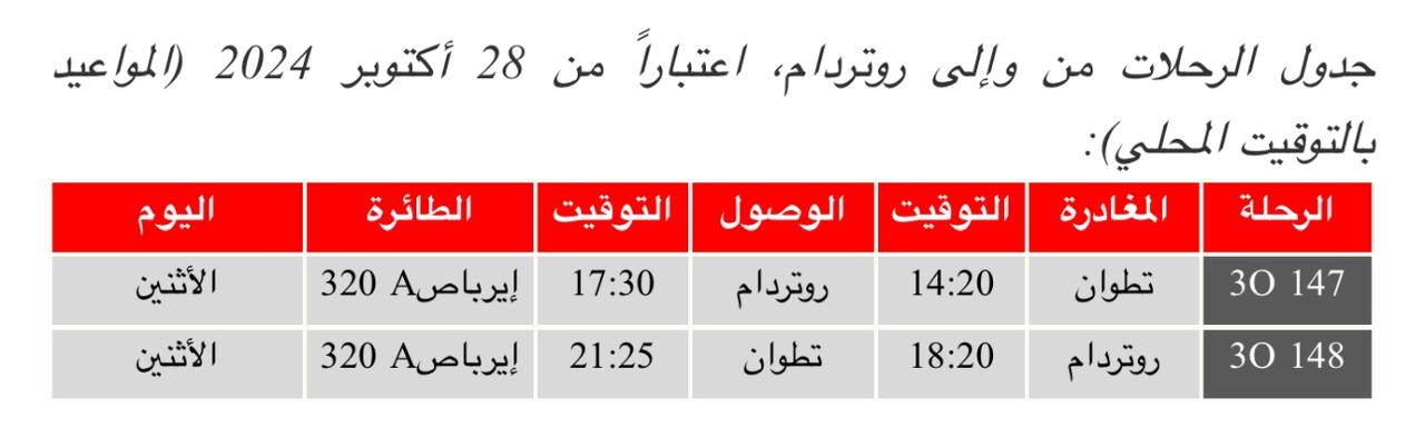 خط جديد بين تطوان و روتردام للخطوط العربية للطيران بأثمنة منخفضة