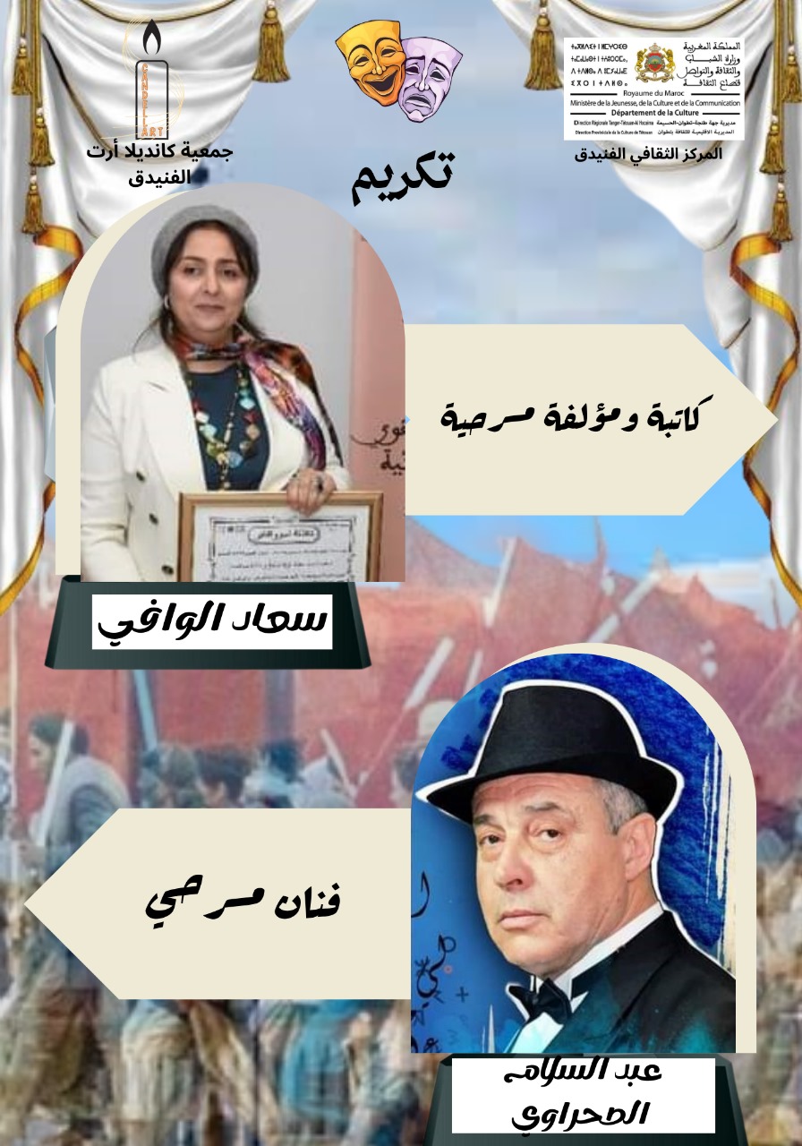 حيث سيتم تكريم عدد من الشخصيات والفنانين المسرحيين(عبد السلام الصحراوي، سعاد الوافي، محمد الحجامي، وبلال اليزيد)، كما يلتقي الجمهور المسرحي، مساء يوم الخميس 31 أكتوبر2024؛ حيث تقدم فرقة “برنس” من مدينة العيون بالصحراء المغربية عرضها المسرحي “ثورة الموتي”.