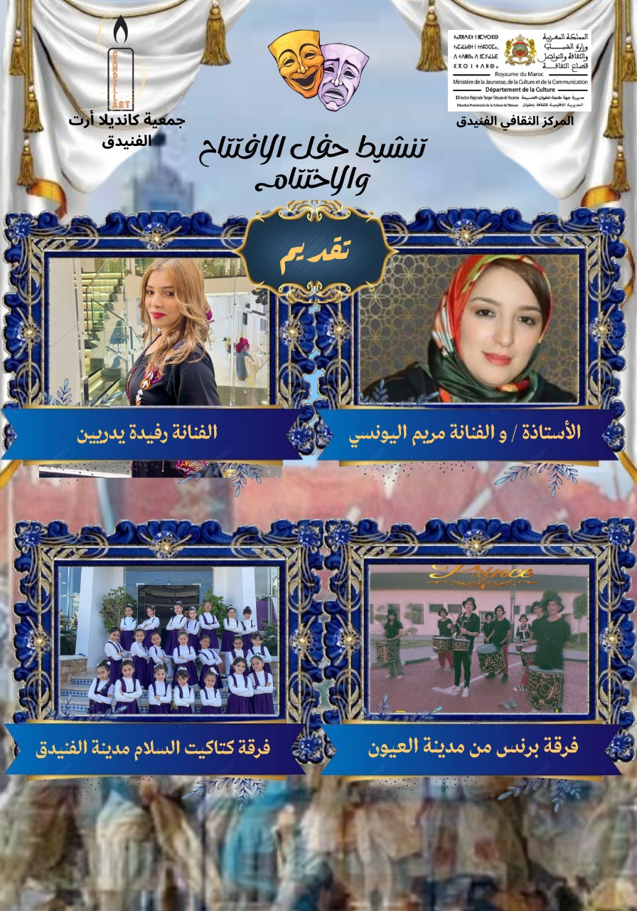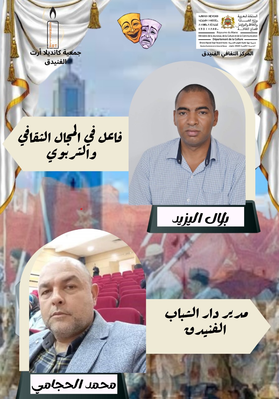 تخليدا للذكرى 49 للمسيرة الخضراء المظفرة، وتنزيلا للبرنامج السنوي لجمعية كانديلا أرت للتربية والثقافة والفنون بالفنيدق، ووعيا من مؤسسة كانديلا آرت Candella -Art بأهمية الفنون وخاصة المسرح في صقل المواهب وتكوين الأطفال والشباب واعدادهم للمستقبل، بما يخدم القضايا الوطنية، والمساهمة في مسيرة التنمية، تنظم جمعية كانديلا أرت بتعاون مع المركز الثقافي بالفنيدق ملتقى كانديلا أرت الوطني للمسرح وفنون الشارع ، في دورته الأولى، تحت شعار: ” مسيرتنا مستمرة من أجل شباب واعد” من 31أكتوبر2024 إلى 02نونبر 2024 .