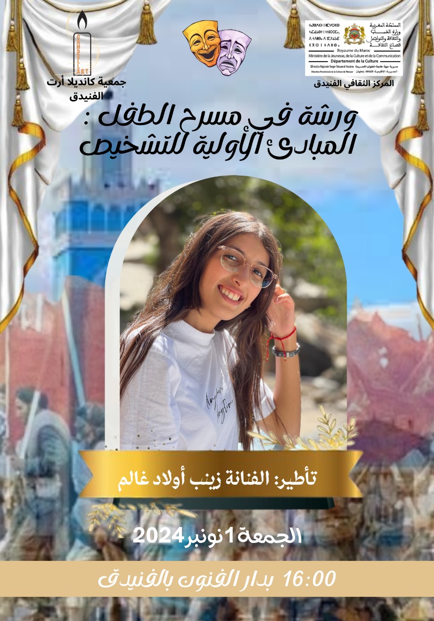 – ورشة في مسرح الطفل: المبادئ الأولية للتشخيص المسرحي، بدار الفنون بالفنيدق تأطير الفنانة زينب أولاد غالم