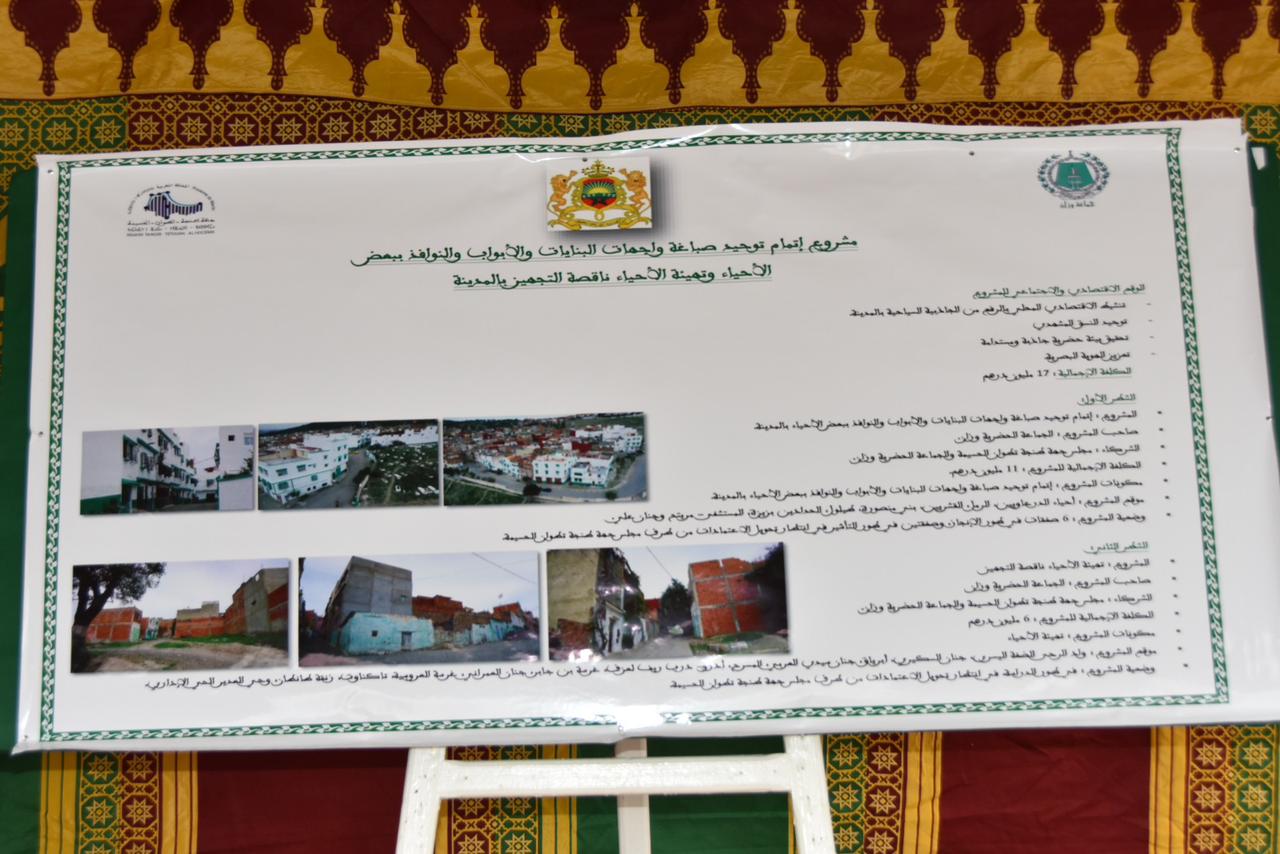 كما تمت زيارة ورش الشطر الأول لأشغال تهيئة بعض الأحياء ناقصة التجهيز بمدينة وزان، وإتمام توحيد صباغة واجهات البنايات والأبواب والنوافذ ببعض الأحياء بالمدينة. وقد تم تخصيص ميزانية إجمالية لهذا المشروع تقدر ب17مليون درهم بمساهمة لمجلس جهة طنجة-تطوان-الحسيمة تقدر ب10 مليون درهم.