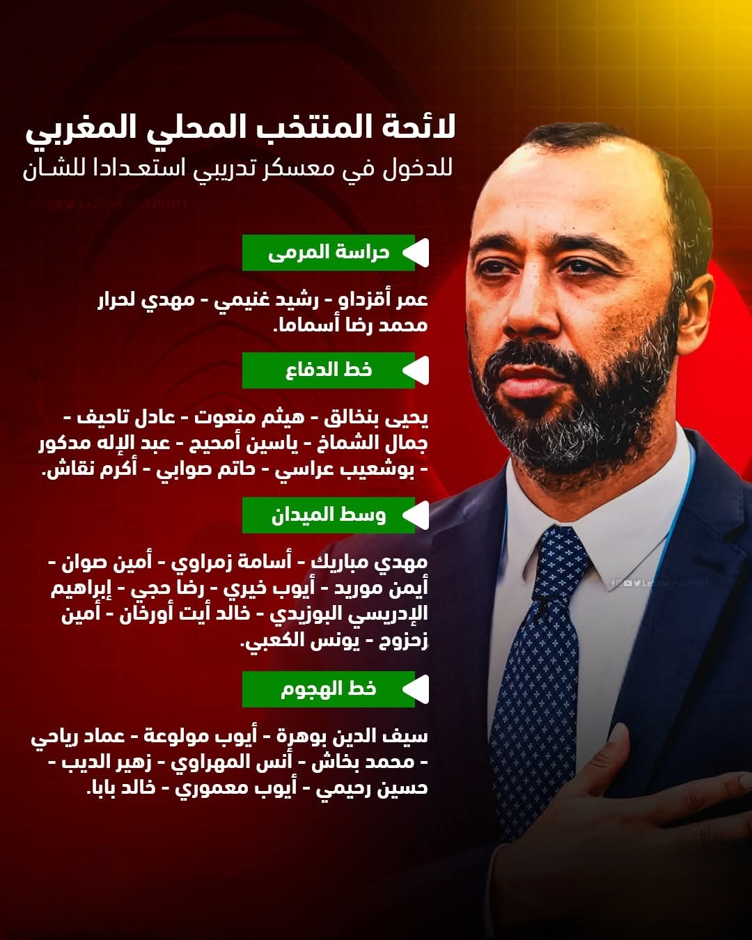 لائحة المنتخب المحلي المغربي للدخول في معسكر تدريبي استعدادا للشان.