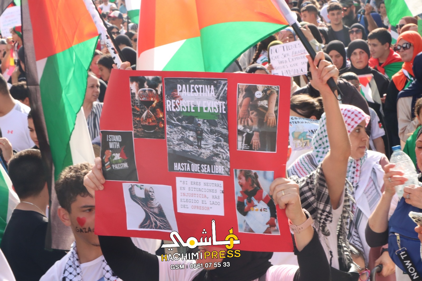 تميزت المسيرة بأجوائها السلمية والمنظمة، حيث سارت الحشود في تناغم تام دون تسجيل أي حوادث أو مشاكل أو مصادمات. وأكدت المصادر المحلية أن المشاركين عبّروا عن تضامنهم من خلال هتافات داعمة لفلسطين، وشعارات تطالب بالعدالة وحق الشعب الفلسطيني في الحرية والكرامة. كما ردد المتظاهرون عبارات مثل “فلسطين حرة” و”كفى ظلماً على غزة”، فيما زينت الأعلام الفلسطينية واللافتات المكتوبة بالعربية والإسبانية شوارع المدينة.