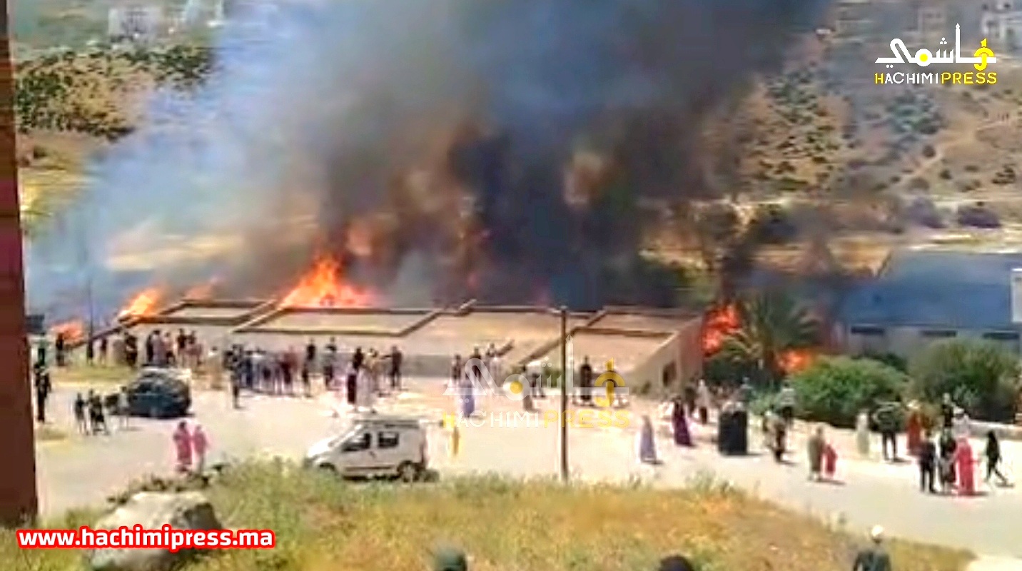 اندلع حريق مهول ظهر اليوم في منطقة حومة الواد التابعة لـ حي طنجة البالية شرق المدينة، وتحديداً بعدد من الورشات والمحلات المتخصصة في بيع وصناعة منتجات تقليدية من مادة القصب.