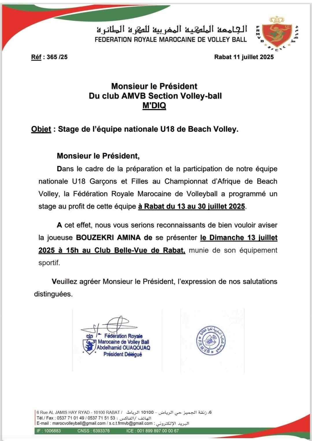 ثلاثي تموداباي بالمضيق ينضم لمعسكر المنتخب الوطني لأقل من 18 سنة استعدادًا للبطولة الإفريقية في الكرة الطائرة الشاطئية