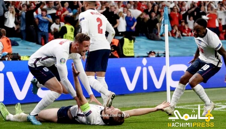 - بلغ المنتخب الإنجليزي المباراة النهائية ليورو 2020، بفوزه على مضيفه الدنماركي (2-1)، مساء اليوم الأربعاء على ملعب ويمبلي، بعد التمديد لشوطين إضافيين، في الدور نصف النهائي.