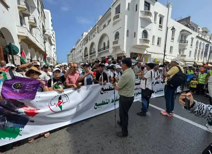 شهدت العاصمة الرباط، صباح اليوم الأحد، مسيرة شعبية ضخمة دعمًا لفلسطين ورفضًا للتطبيع، بدعوة من الجبهة المغربية لدعم فلسطين ومناهضة التطبيع. وجاءت هذه المبادرة في إطار حراك عالمي يتصدى للإبادة الجماعية والتجويع المنهجي الذي يعاني منه سكان قطاع غزة منذ أزيد من 21 شهرًا.