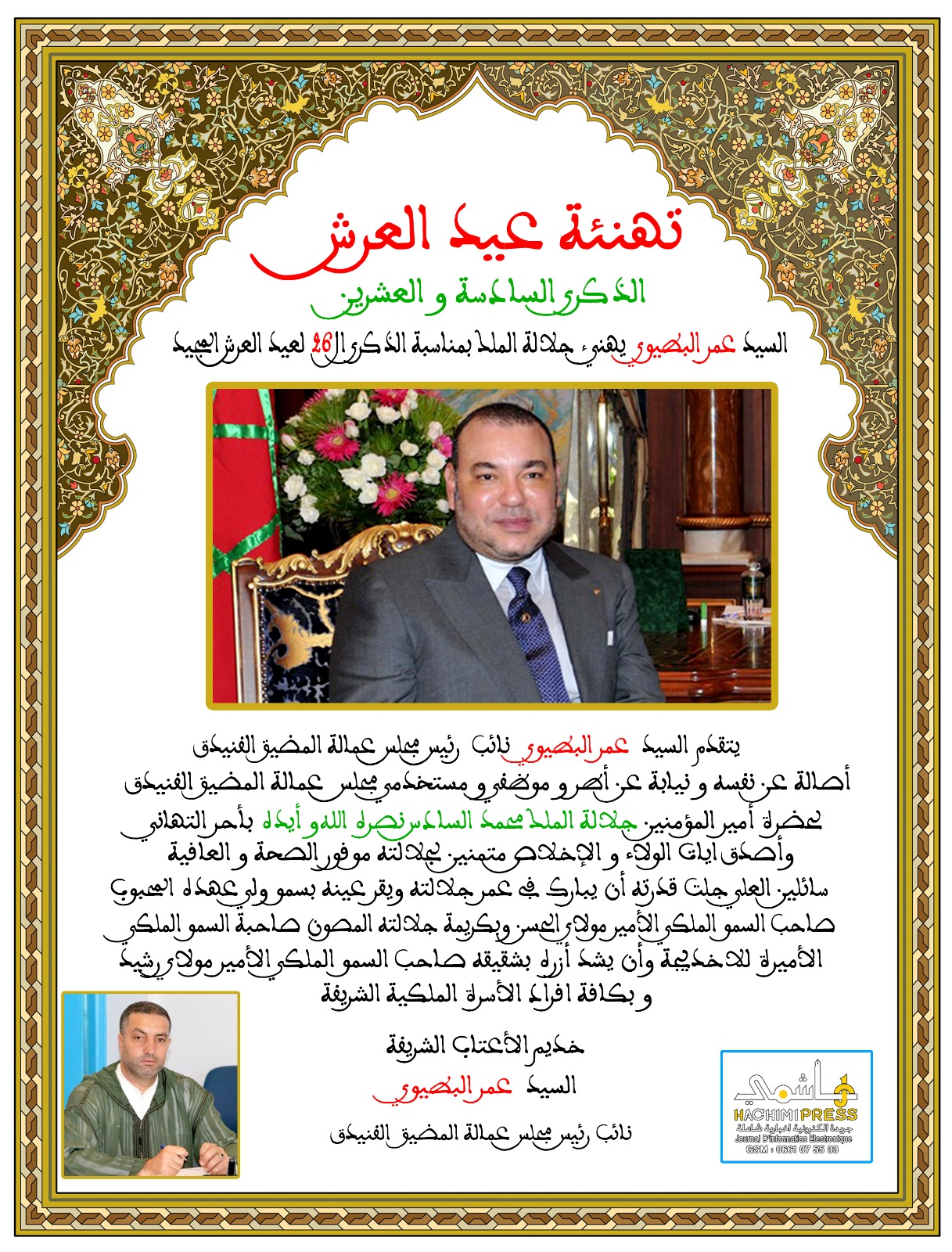 السيد عمر البطيوي يهنئ جلالة الملك بمناسبة الذكرى ال26 لعيد العرش المجيد