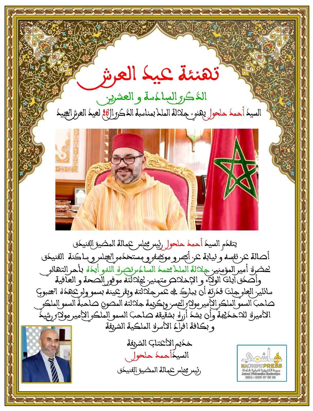 السيد أحمد حلحول يهنئ جلالة الملك بمناسبة الذكرى ال26 لعيد العرش المجيد
