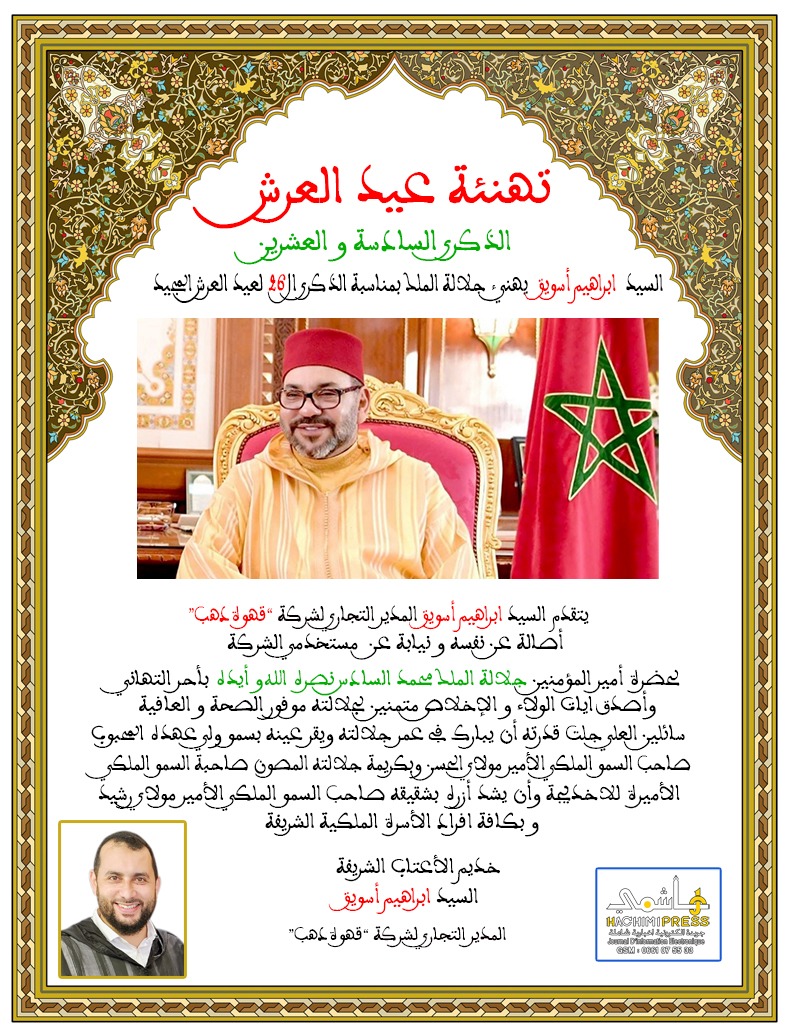 السيد ابراهيم اسويق يهنئ جلالة الملك بمناسبة الذكرى ال26 لعيد العرش المجيد