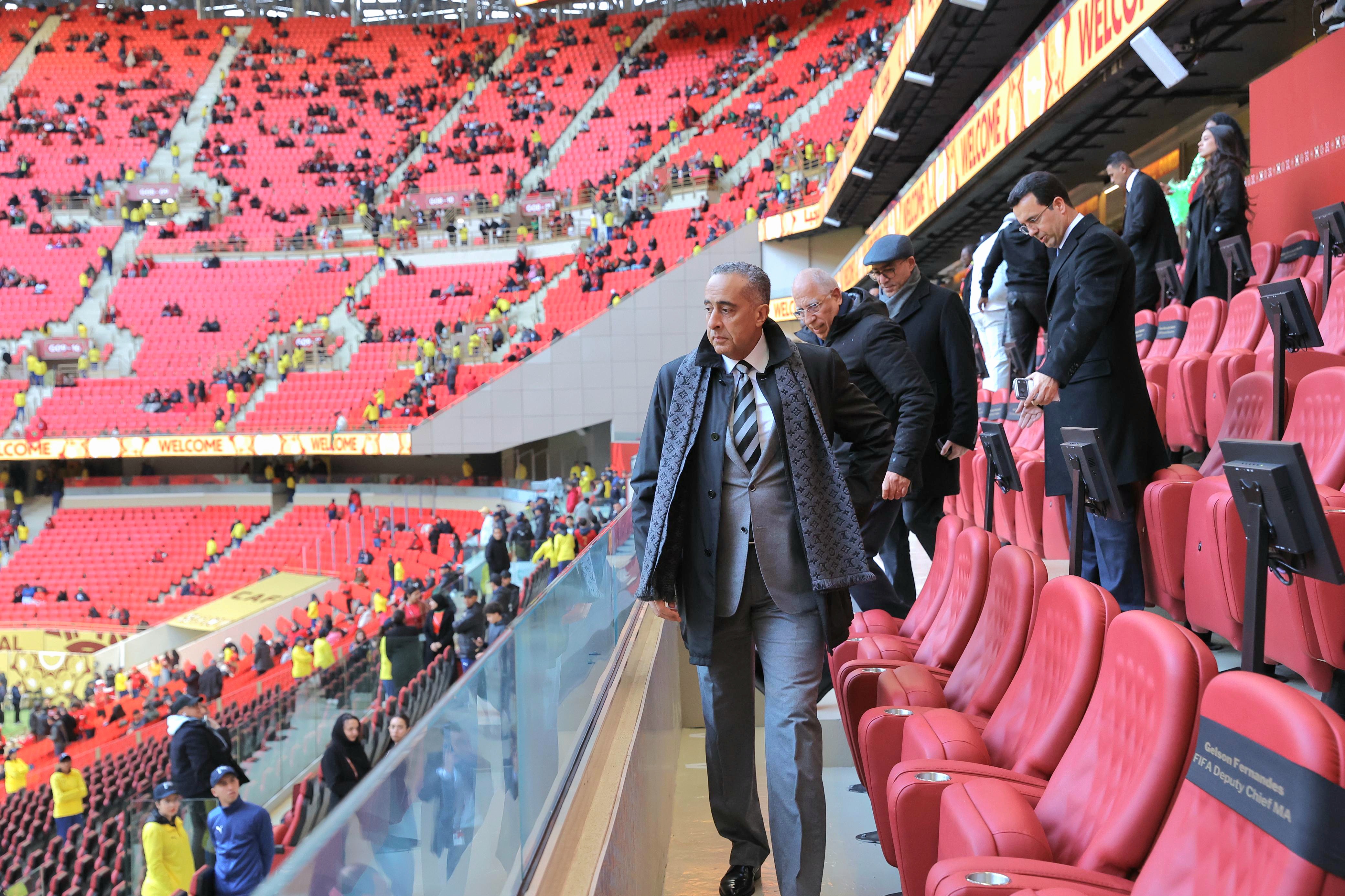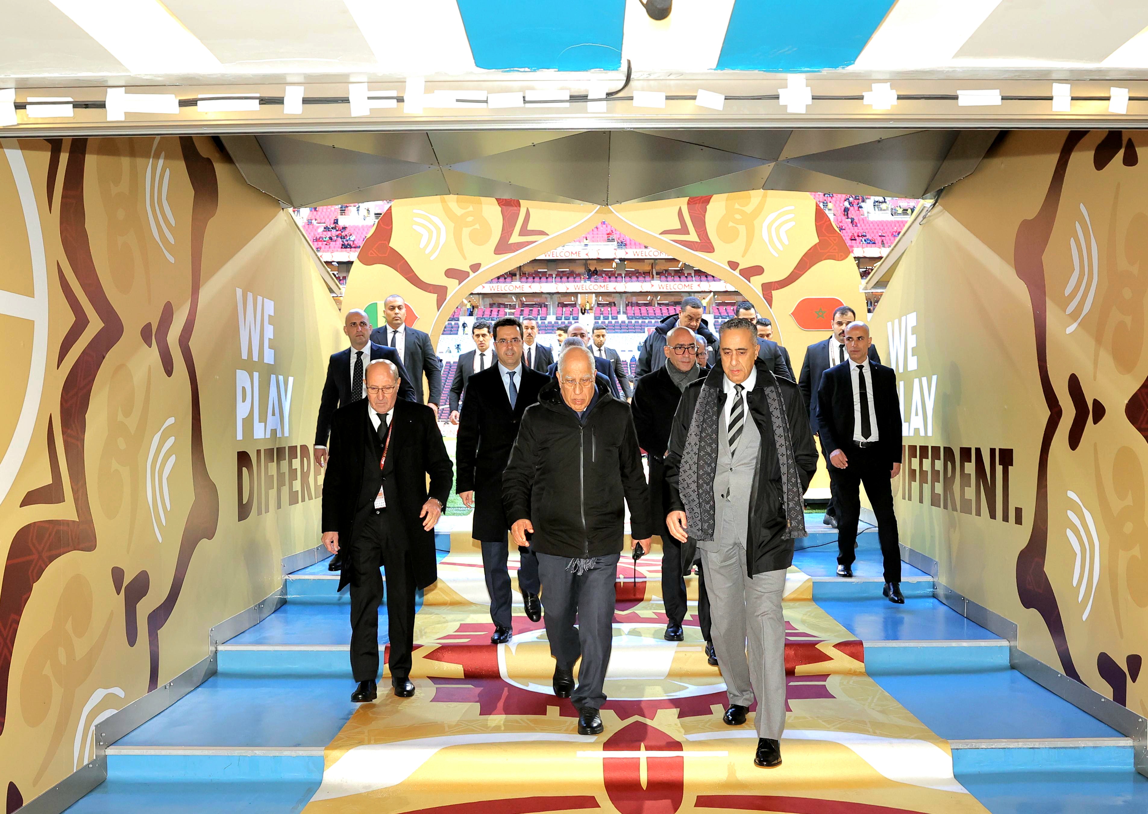 وحرص المدير العام، رفقة الوفد الأمني، على تتبع أدق التفاصيل الميدانية للخطة الأمنية، بداية من المحاور الطرقية المؤدية إلى الملعب لضمان انسيابية السير، وصولاً إلى بوابات الدخول ومناطق التفتيش والفرز. وشدد حموشي في هذا الصدد على ضرورة الموازنة بين الصرامة في تطبيق معايير السلامة، والمرونة في تسهيل ولوج الجماهير الغفيرة المتوقع حضورها لهذه القمة الكروية.