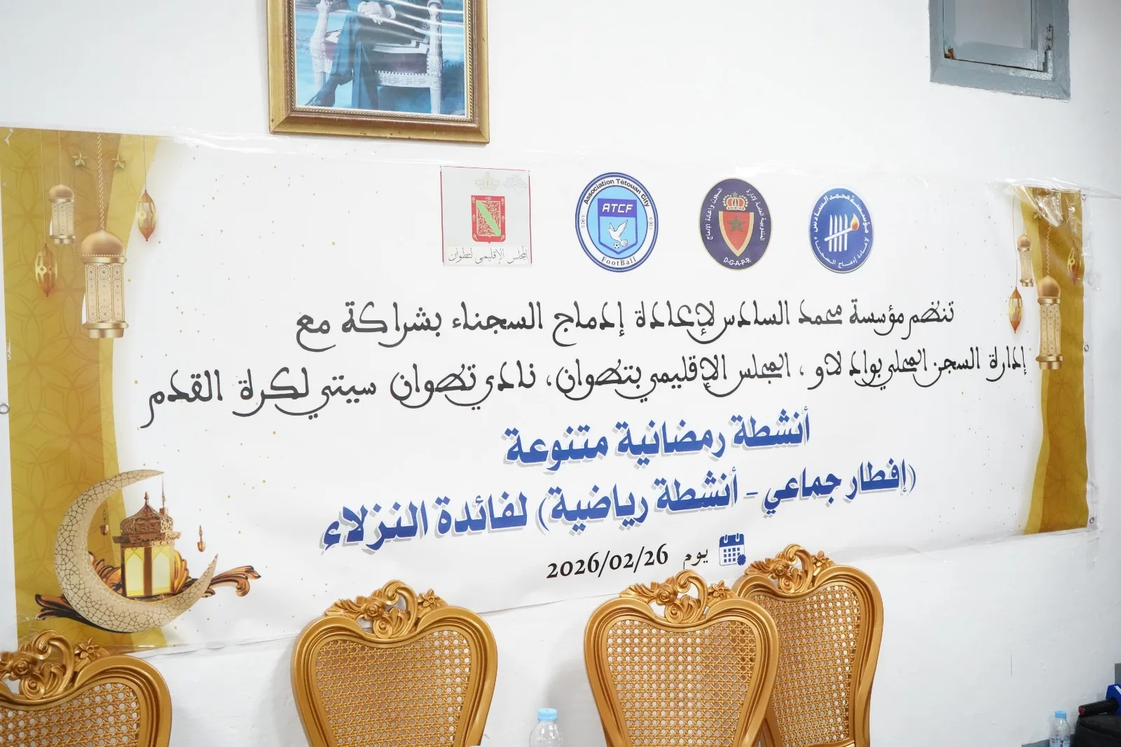 وقد جرت هذه المبادرة في أجواء أخوية وإنسانية متميزة، شكلت مناسبة لتعزيز قيم التضامن والتآزر التي يجسدها الشهر الفضيل. وتضمن برنامج الحفل تنظيم مباراة ودية في كرة القدم جمعت بين فريق يمثل نزلاء المؤسسة السجنية وفريق نادي تطوان سيتي، الممارس ضمن بطولة القسم الممتاز لكرة القدم داخل القاعة، وذلك في مبادرة رياضية هادفة إلى ترسيخ روح التعاون والاندماج، وبث الحماس والطاقة الإيجابية في صفوف النزلاء.