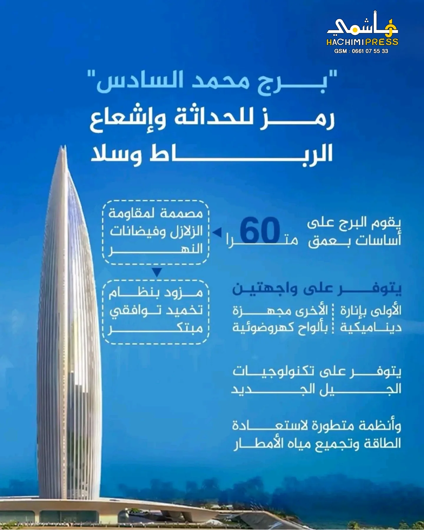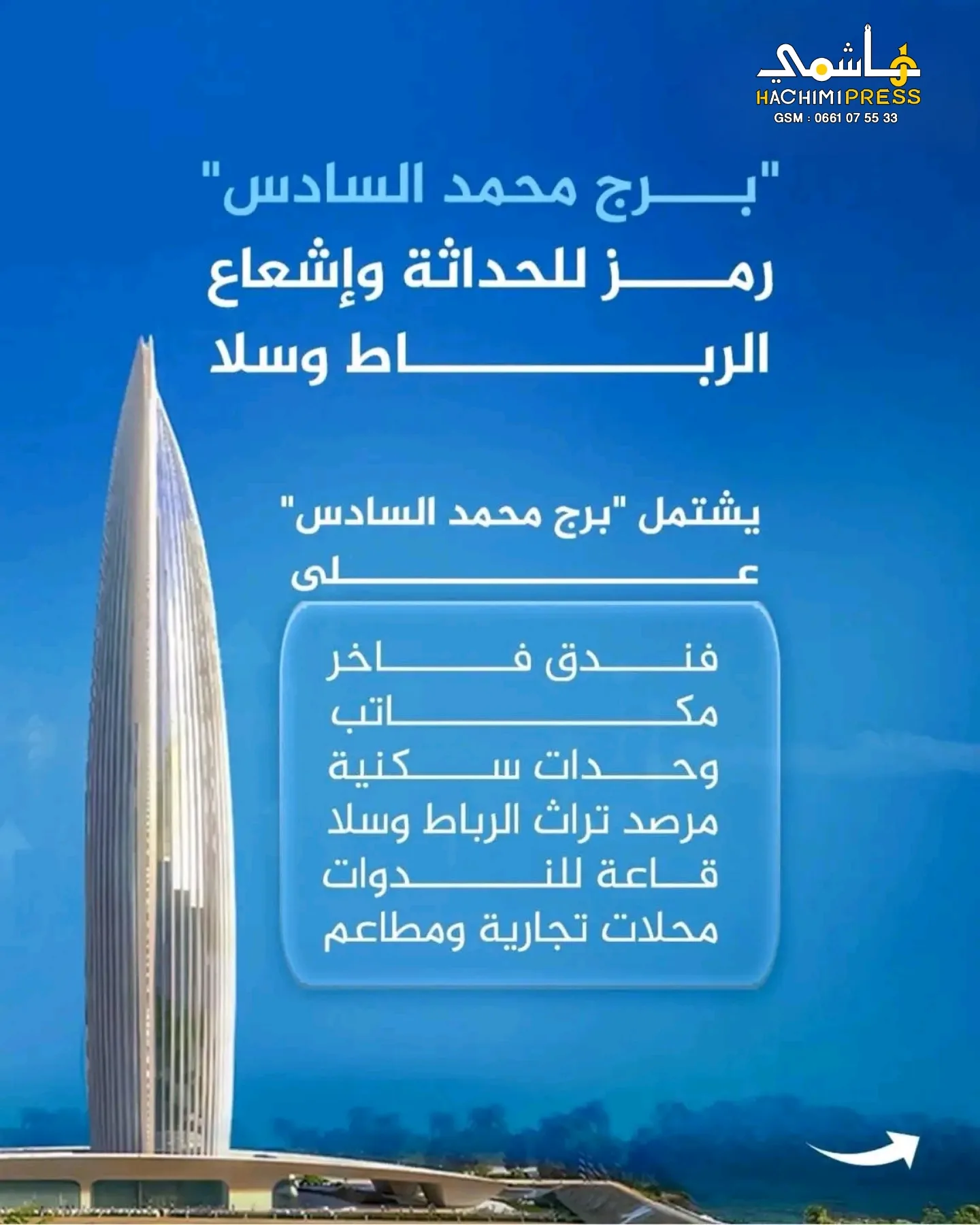 يُعد برج محمد السادس واحدًا من أبرز المشاريع المعمارية الحديثة في المغرب وإفريقيا، حيث يجسد رؤية متقدمة تجمع بين الفخامة والتكنولوجيا والاستدامة، في إطار التحولات العمرانية الكبرى التي تشهدها ضفاف وادي أبي رقراق بين مدينتي الرباط وسلا.
