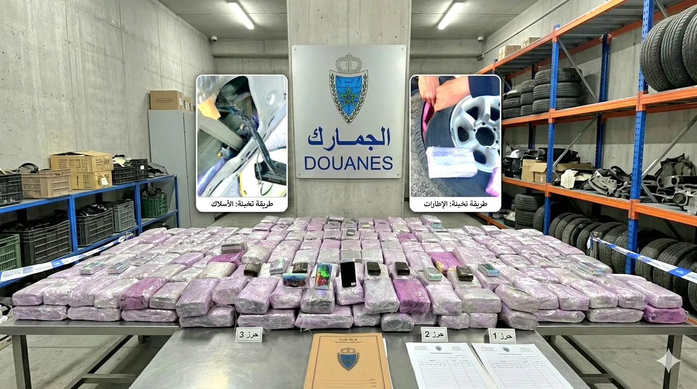 وحسب مصدر جمركي، أوقفت المصالح المختصة سيارة من نوع “ميتسوبيشي مونتيرو” تحمل لوحات ترقيم إسبانية. وكان يقودها مواطن إسباني من أصول مغربية مقيم بإسبانيا. وأسفرت عملية التفتيش الدقيق عن اكتشاف المخدرات مخبأة بإحكام داخل تجاويف متعددة بهيكل السيارة. وشملت هذه التجاويف الأبواب الجانبية والأجنحة، إضافة إلى خزان الوقود والعجلة الاحتياطية.