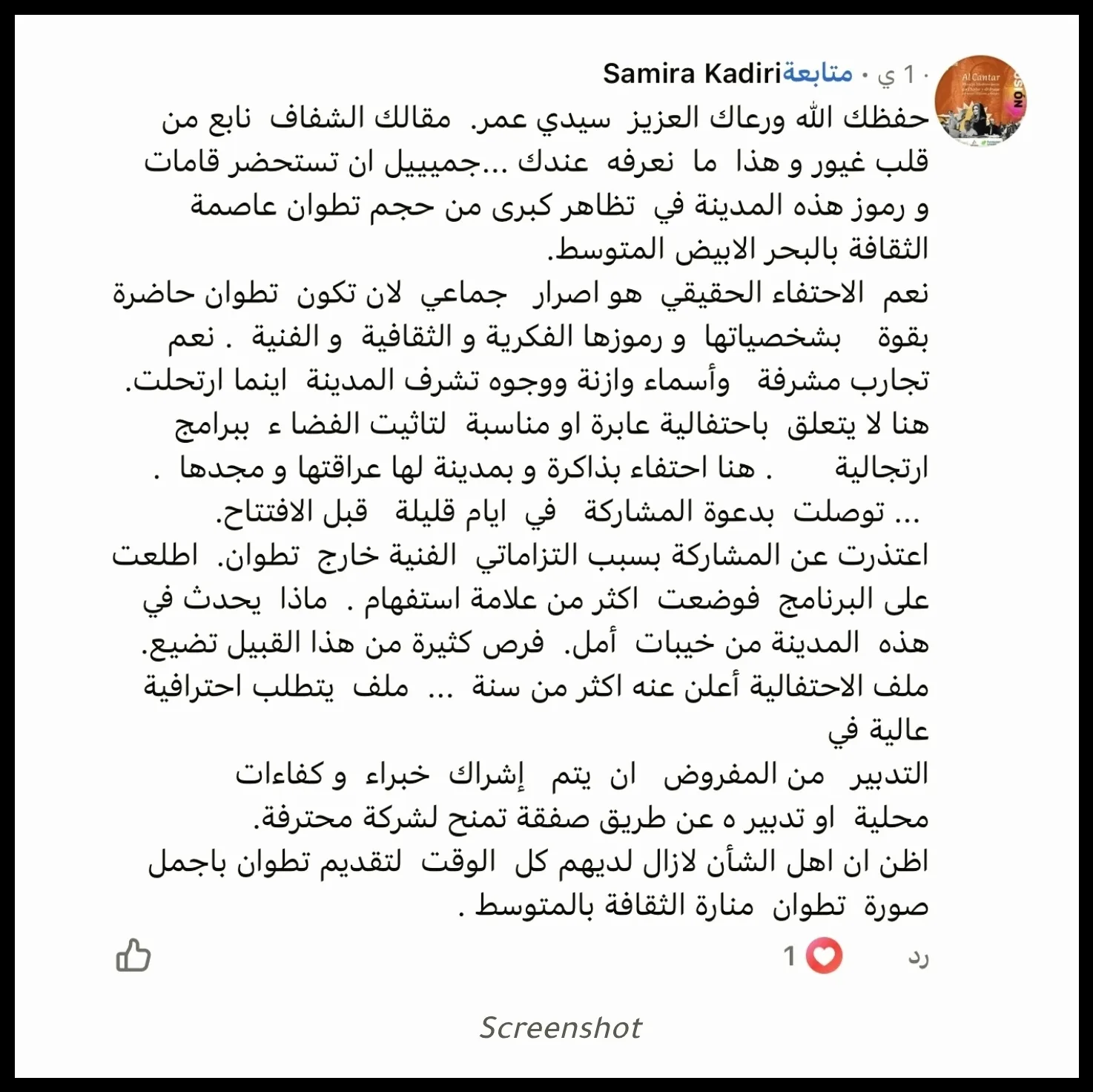 كما أثار الغياب اللافت للفنانة سميرة القادري تساؤلات إضافية، خاصة لما راكمته من إسهامات في تأطير وتدريس الفن الأندلسي، إلى جانب الفنان التهامي الحراق، و“جوق الهلال التطواني” الذي يُعد من أبرز الحاملين للتراث الموسيقي المحلي.