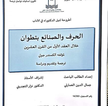 “الحرف والصنائع بتطوان…لمؤلفه ألكسندر جولي” موضوع دكتوراه يناقشها الباحث “العمارتي”