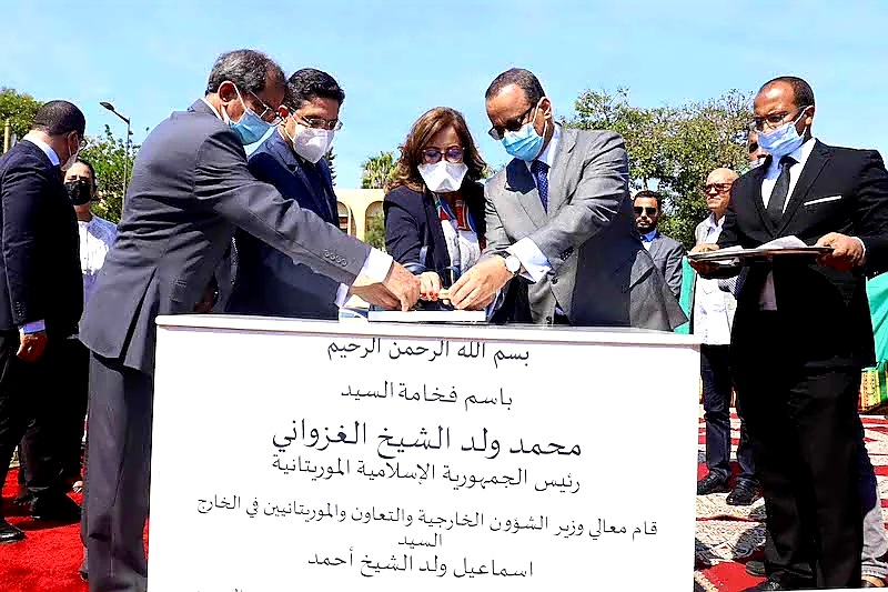 وفي السياق نفسه، وضع وزير الشؤون الخارجية الموريتاني إسماعيل ولد الشيخ أحمد، رفقة نظيره المغربي ناصر بوريطة، الحجر الأساس للمركب الدبلوماسي الموريتاني الجديد الكائن بحي السويسي في العاصمة المغربية الرباط.