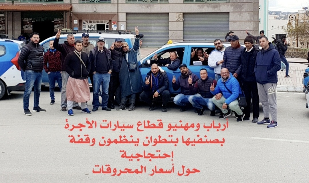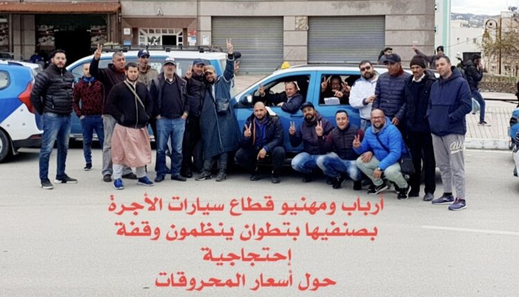 أرباب ومهنيو قطاع سيارات الأجرة بصنفيها بتطوان ينظمون وقفة إحتجاجية حول أسعار المحروقات