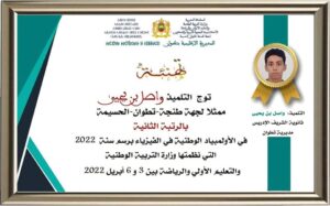فهنيئا للتلميذين المتوجين ولأسرهم الراعية ولمؤطريهم ومؤطراتهم الحاضنة، وللمديريةالإقليمية بتطوان والأكاديمية الجهوية للتربية والتكوين لجهة طنجة تطوان الحسيمة بهذا الإنجاز التلاميذي المشرف.