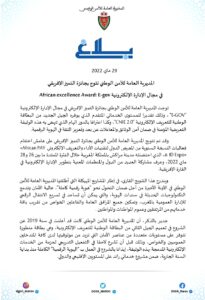 وقد تم تتويج المديرية العامة للأمن الوطني بجائزة التميز الإفريقي على هامش اختتام فعاليات النسخة السنوية من المعرض الدولي لتقنيات الأداء والتعريف الإلكتروني “Africa Pay & ID Expo”، الذي احتضنته مدينة مراكش بالمملكة المغربية خلال الفترة الممتدة ما بين 26 و 28 ماي 2022، وعرف مشاركة العديد من الدول والمنظمات المعنية بتطوير الإدارة الإلكترونية بالقارة الإفريقية.