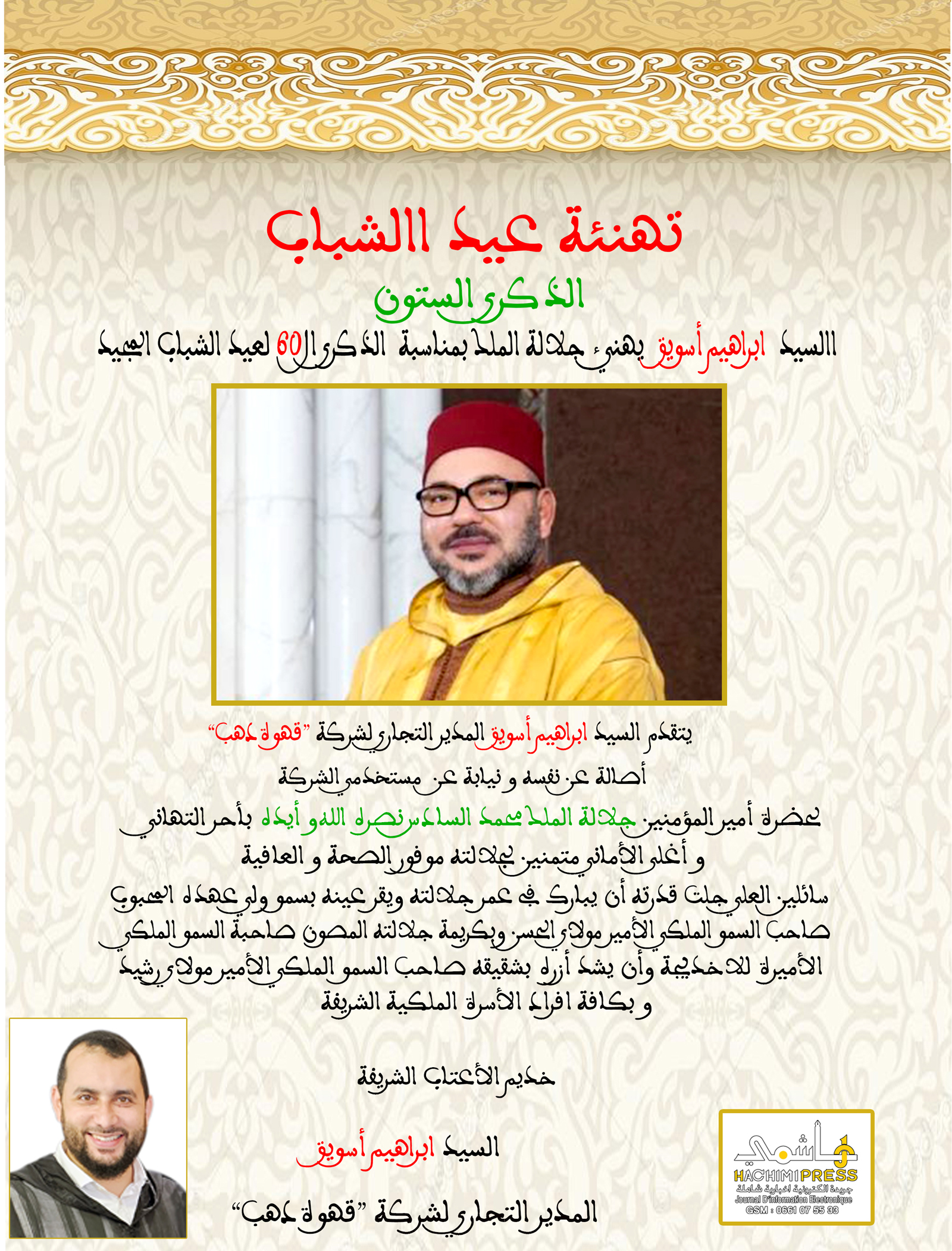 السيد إبراهيم اسويق يهنئ جلالة الملك بمناسبة الذكرى الـــ 60 لعيد الشباب المجيد آخر تحديث أغسطس 23- 2023 0 819 انشر 0 819 انشر