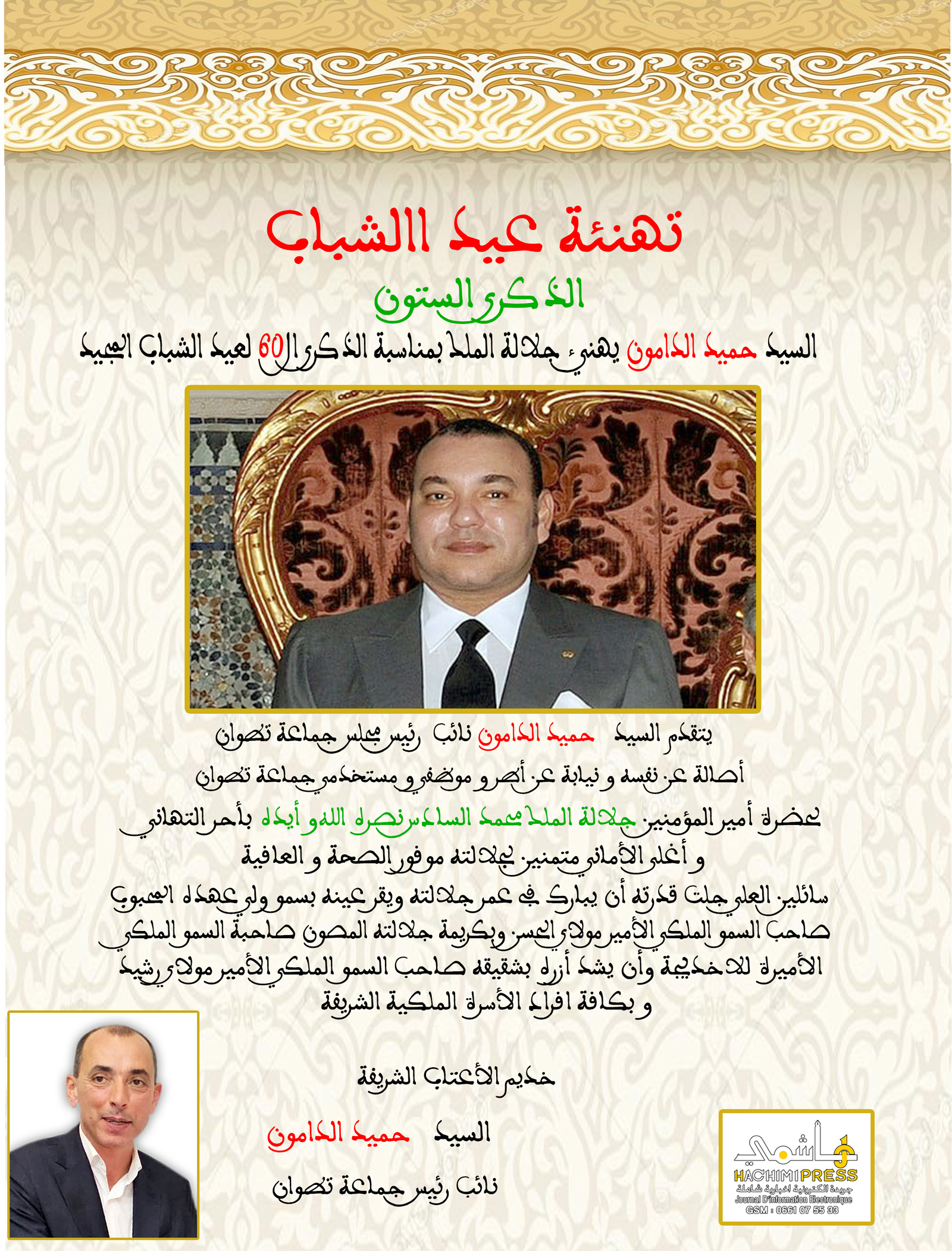 السيد حميد الدامون يهنئ جلالة الملك بمناسبة الذكرى الـــ 60 لعيد الشباب المجيد في أغسطس 23- 2023 0 1٬857 انشر 0 1٬857 انشر