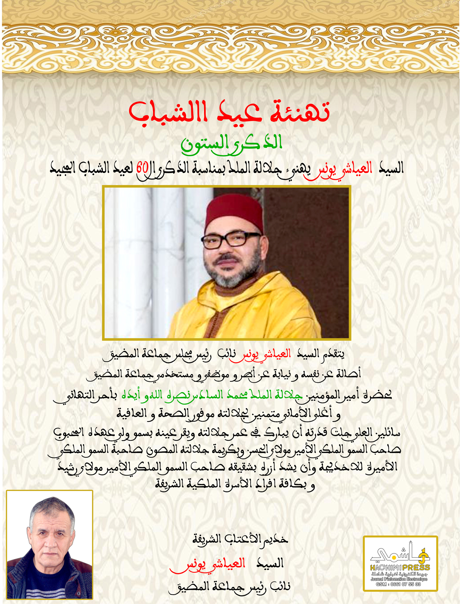 السيد العياشي يونس يهنئ جلالة الملك بمناسبة الذكرى الـــ 60 لعيد الشباب المجيد في أغسطس 23- 2023 0 1٬881 انشر 0 1٬881 انشر