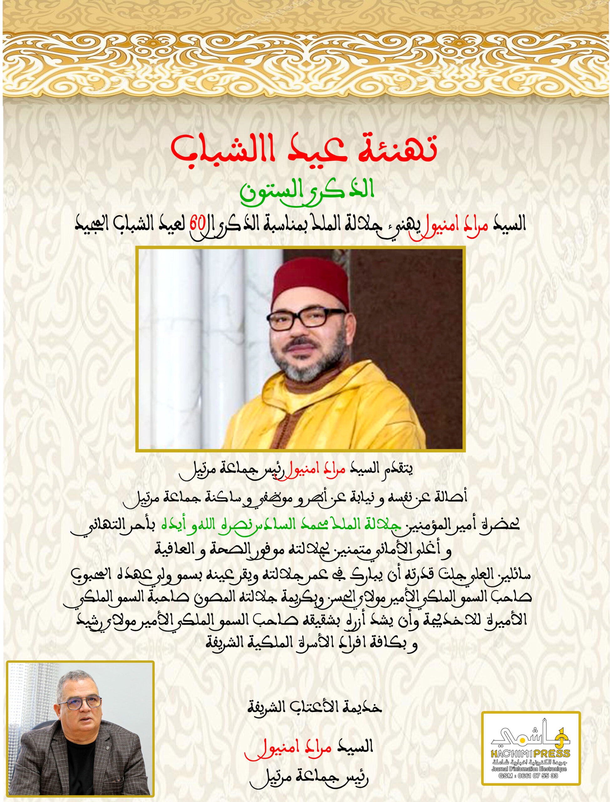 السيد مراد امنيول يهنئ جلالة الملك بمناسبة الذكرى الـــ 60 لعيد الشباب المجيد في أغسطس 23- 2023 0 742 انشر 0 742 انشر