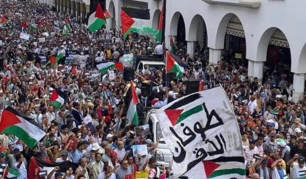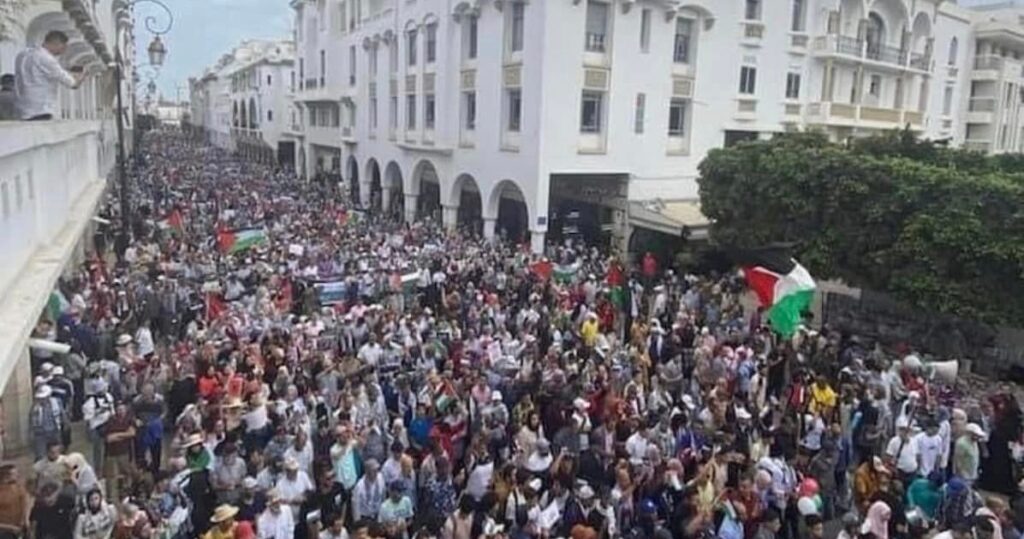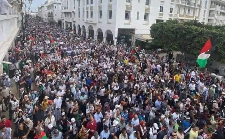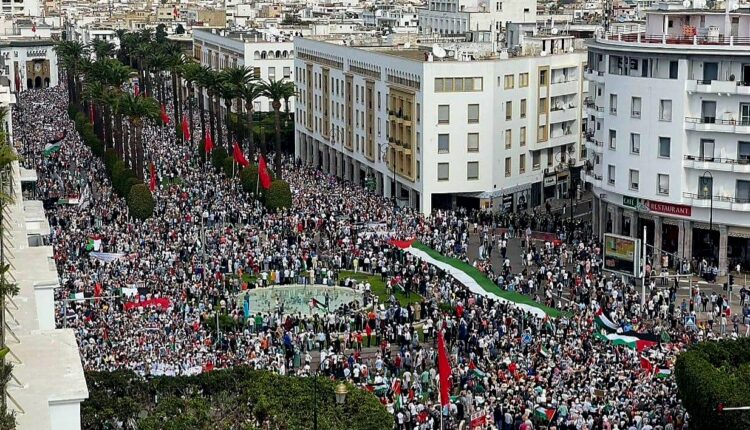 مئات الآلاف من المواطنين المغاربة يحتشدون في مسيرة تضامنية مع الشعب الفلسطيني