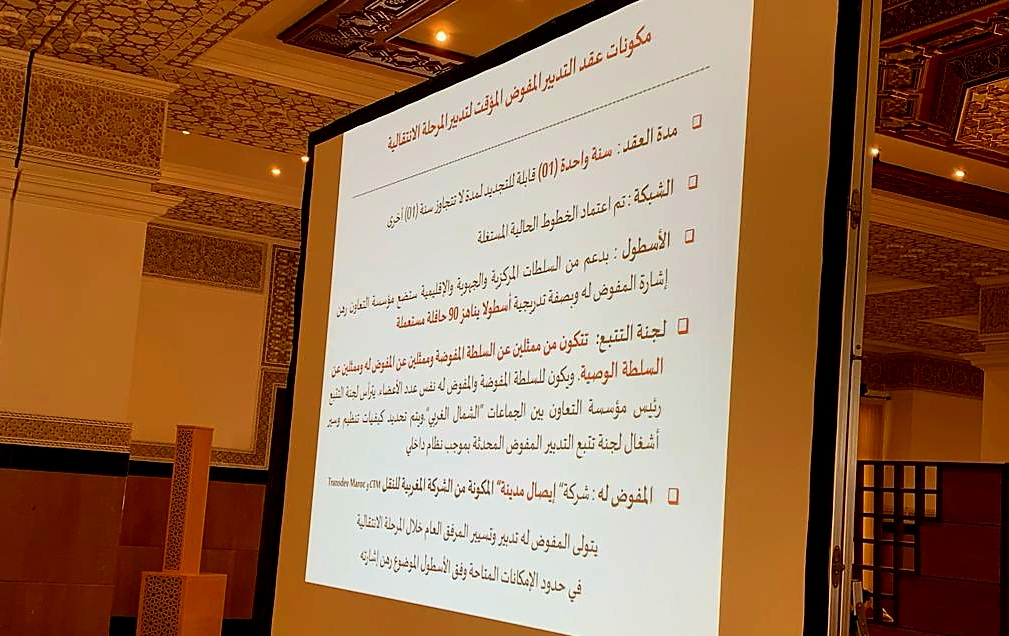 وستعمل شركة ” إيصال المدينة ” على تدبير المرحلة الانتقالية إلى حين الإعداد والمصادقة على دفتر التحملات الجديد وسلك المساطر المتعلقة بالصفقة واختيار الشركة المستوفية للشروط.