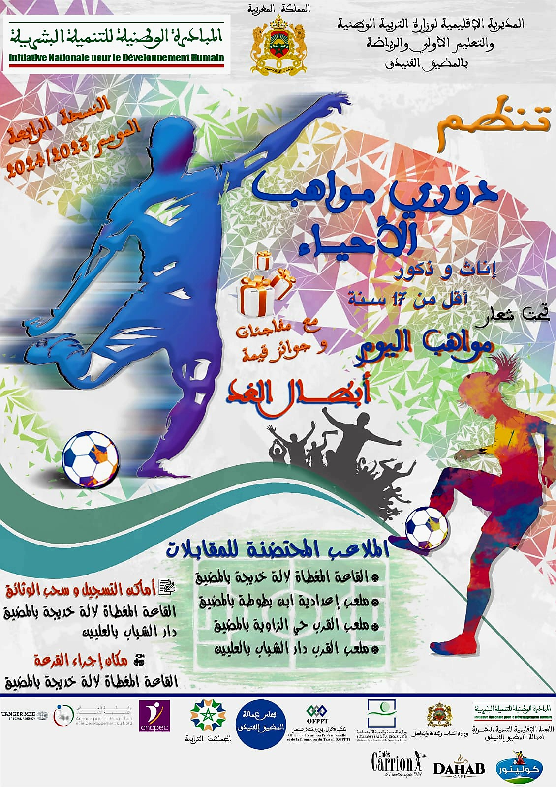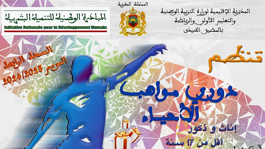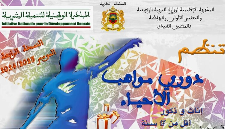 المديرية الإقليمية لوزارة التربية الوطنية والتعليم الأولى والرياضة بالمضيق الفنيدق و اللجنة الإقليمية للتنمية البشرية لعمالة المضيق الفنيدق تنظم دوري مواهب الأحياء بمدينة المضيق إناث و ذكور في نسخته الرابعة لموسم 2024/2023 تحت شعار :