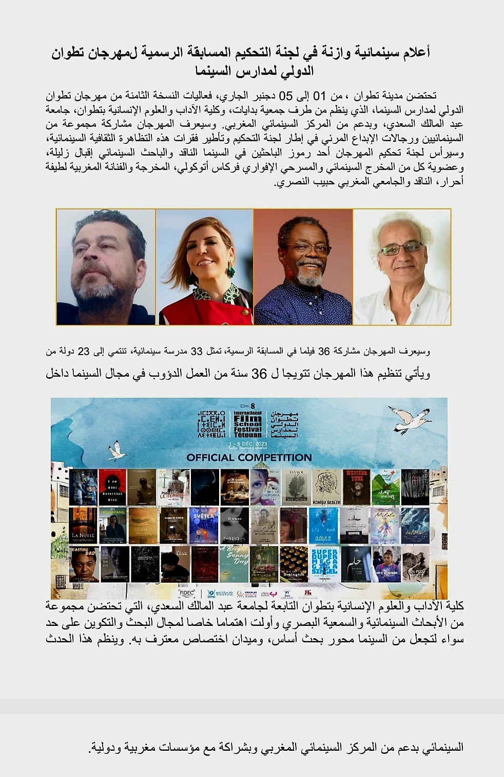 أعلام سينمائية وازنة في لجنة التحكيم المسابقة الرسمية لمهرجان تطوان الدولي لمدارس السينما