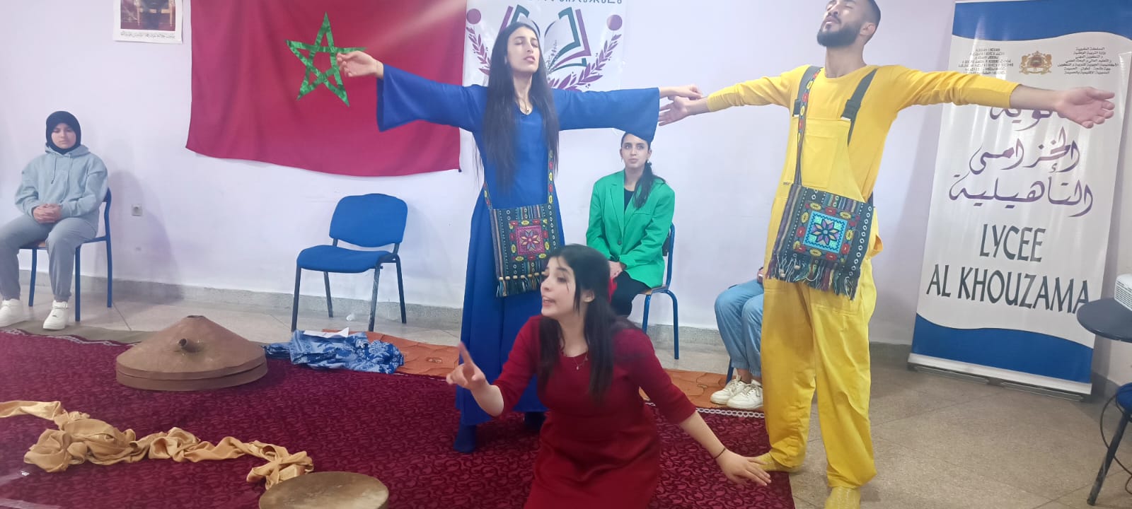 كما قدمت الفرقة عرضها المسرحي الاحتفالي “جوارو” لتلميذات وتلاميذ المؤسسة، وهو العرض الذي يناقش مسألة الاختلاف، وقبول الاخر. بالاضافة إلى الاعتماد على النفس ونبذ الكسل، من أجل تحقيق الأحلام. موظفا التراث المادي واللامادي والاهازيج الريفية الأصيلة.